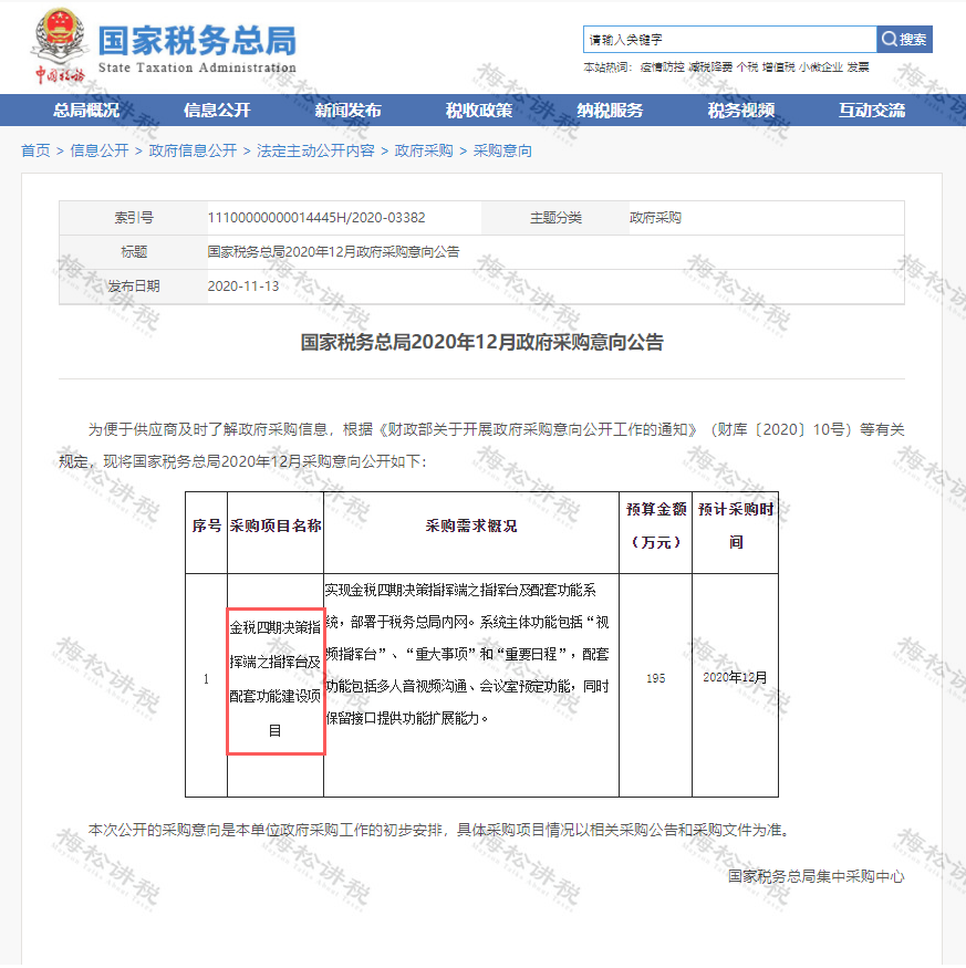 电子发票实行之后,税局对开票数据掌握更加精准和细致,所以对发票的监管也会更加严格。11月13日,再加上国家税务总局发布2020年12月政府关于金税四期采购意向公告: